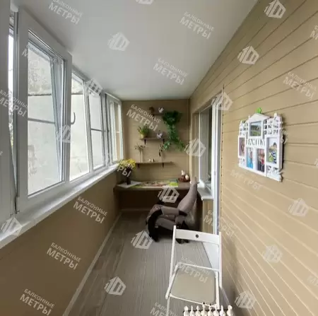 Дизайнерская отделка с утеплением 6-метровой лоджии в доме серии II-68. Выполнено остекление ПВХ Rehau, обшивка стен евровагонкой, потолок ПВХ панели, пол отделка ламинатом. Встроенная, навесная мебель по индивидуальным размерам. Монтаж элементов декора. Материал предоставлялся компаний Балкония согласно пожеланиям заказчика.