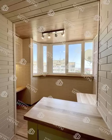 Дизайнерская отделка с утеплением лоджии в доме серии П-111М. Сделано эркерное остекление ПВХ Rehau, обшивка стен ламинатом липа, потолока ламинатом, подключен теплый пол с отделкой ламинат, утепление. Проведено электричество, монтаж светильников. Встроенная, навесная и откидная мебель по индивидуальным размерам. Материал предоставлялся компаний Балкония согласно пожеланиям заказчика.